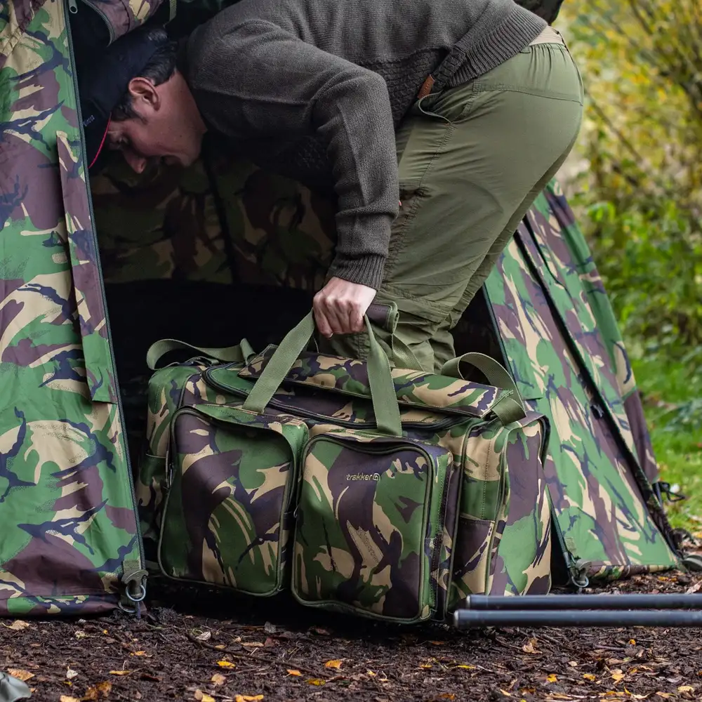 Diese Trakker Tasche ist jetzt im DPM-Tarndruck erhältlich und verleiht Ihrem Aufenthaltsort am Ufer, zusammen mit Ihrem zugeordneten Bivvy, Stuhl, Bett, Rucksack und Ihrem Gepäck, ein militärisches Aussehen.