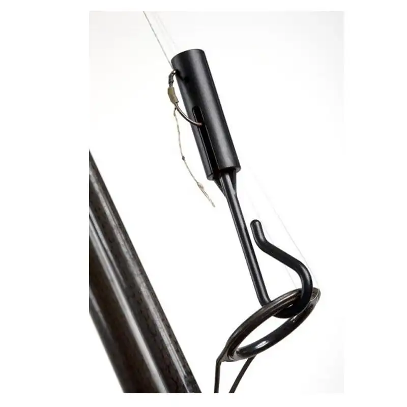 Um es zu benutzen, schieben Sie einfach Ihre Hakenspitze in den Schlitz an der Seite vom Hook-Up, damit sich die Spitze sicher in die schützende Schaumgummieinlage befindet. Dann haken Sie den Hakenschutz an Ihrem Rutenring ein und transportieren Ihre Angel wie gewohnt.
