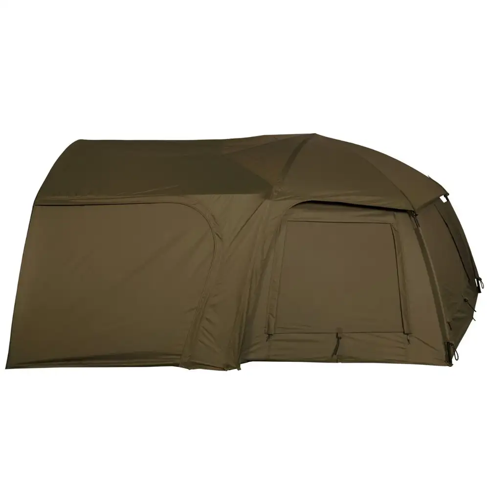 Der zusätzliche Platz ermöglicht es Ihnen, Gäste bequem zum geselligen Beisammensein einzuladen, oder wenn Sie mit Freunden uneingeschränkt zusammen sitzen wollen. Es bietet auch mehr Platz für die längeren Sessions bei jedem Angelausflug, wenn Sie zusätzliches Gepäck oder Ausrüstung mitnehmen möchten, Kochen wollen, Vorfächer am Tisch binden oder einfach nur mit dem Angelstuhl im Zelt sitzen und dabei das Wasser am Abend beobachten.